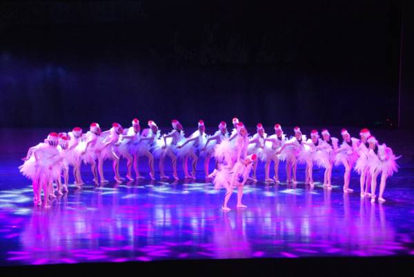 “三色”点染多彩家园。走进剧场,深邃星空下,钻石般晶莹的盐结晶体上,伴随着水滴声、波纹涟漪,电脑染色灯相继将晶体染成绿、红、蓝三色。第一篇章“海之诗”一曲舞蹈《踏浪煮海》、淮歌表演《范公长堤》,讲述了盐城人的蓝色畅想,再现盐城人“踏浪煮海”、“弄潮扬帆”的不屈精神。优美的音乐中,绿色的芦苇荡里摇出一叶扁舟。第二篇章“城之韵”中,《丹鹤之恋》、《牡丹咏春》等节目,演绎了一曲盐城特有的绿色浪漫:清水湾、银滩涂美如画卷,灯光下,仙鹤舞动,麋鹿跳跃,串场碧波引来水街秀,枯枝牡丹争得春色艳……“东进”的雕塑,在红色灯光下格外肃穆庄严。在第三篇章“红色情怀”中,《好人赞》、《我是盐城人》等节目,紧扣时代节拍,彰显盐城城市形象。
