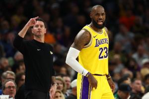 赛后,湖人主帅雷迪克接受了记者采访。谈到詹姆斯的领导力,他说道:“他在整场比赛中展现了出色的领导力——我们整个星期都在讨论如何在进攻端保持联系并信任传球。他在上半场就贡献了10次助攻,并在关键时刻完成了一些得分。总的来说,他打了一场非常出色的比赛,在防守端也全力以赴。他在攻防两端都付出了巨大的努力,这就是季后赛的精神。”