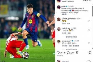 巴萨中场佩德里社媒晒出比赛照片,配文:“只要还有可能,我们就会努力尝试。永远、永远、永远,加油巴萨!”