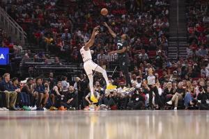 我们即使没有三分球也得了130分,但是当有人在你头上投进干拔三分,而且他们比你多进了11个三分球时,这很伤士气。如果我们能把这个差距缩小一半,或者我们也多进几个,这很容易就是我们要赢20分的比赛。所以三分球线一直是很多球队赢球的原因,这是这个联盟很多球队之间的区别。嗯,所以你得称赞他们投进了一些球,但我们得到的分数足以赢下比赛。