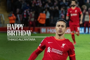 体育资讯4月11日讯 今天是蒂亚戈的35岁生日,老东家利物浦为他庆生。
