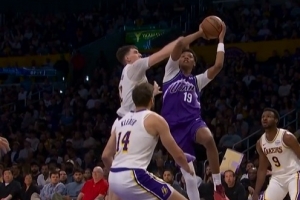 GIF-拉拉维亚干扰贝利被吹犯规,湖人挑战成功