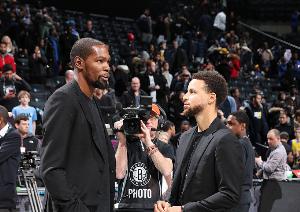 库里(右膝髌股疼痛综合征-跑步膝)目前的状态是出战成疑,此前名记Shams报道库里将在本场复出。如无意外,这将是库里和杜兰特生涯第33次常规赛交手。